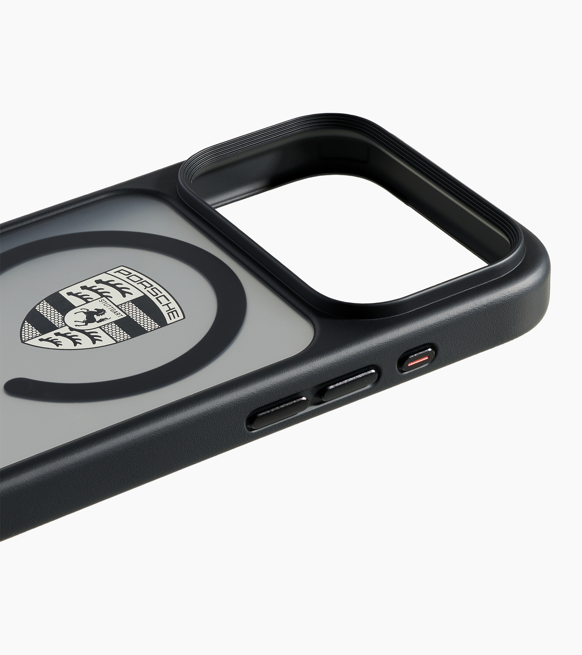 Продуктивність Porsche — у вашій кишені: преміальна панель для iPhone® 17 Pro у вічному дизайні, прикрашена культовим гербом Porsche. Алюмінієва рамка камери створює стильний акцент і забезпечує додатковий захист. Завдяки сумісності з MagSafe бездротове заряджання можливе у будь‑який момент.